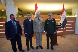 وقال الملحق العسكري المصري اكرم سعيد ان مصر تشهد خلال السنوات الاخيرة ثورة هائلة في كافة قطاعات التنمية بالدولة في ظل تعاون وثيق واحترام متبادل لحقوق دول الجوار في الحياة الامنة ، ان مظاهر الازدهار في مصر تشمل ايضا المشروعات الاقتصادية العملاقة والتي تعيد مصر الى وضعها الرائد بالمنطقة بالتعاون مع اشقائها واصدقائها من الدول العربية والاجنبية .مشيرا الى ان ما تحقق من اهداف لدعم المصالح المشتركة بين بلدنا خلال فترة وجيزة من العمل المكثف ي كافة مجالات التعاون العسكري استند على اسس ومبادئ راسخة مبنية على رغبتنا المشتركة في نشر ثقافة السلام والتصدي لقوى العنف والتطرف التي تشهدها منطقتنا خلال الفترة الاخيرة .