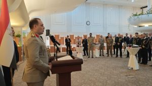 واكد الملحق العسكري المصري ان لا شك ما نشهده من تحديات ناجمة عن التفاعلات الجارية في البيئة الامنية لمنطقة الشرق الاوسط يدفعنا للتعامل بمسئولية تجاه القضايا المشتركة لاستعادة الامن والاستقرار الاقليمي وتحقيق متطلبات الامن بمفهومه الشامل مع عدم اغفال مراعاة خصوصية المجتمعات والشعوب ورفض مبدا التدخلات في الشئون الداخلية للدول
