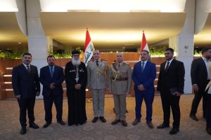 وأعرب ملحق الدفاع المصري في العرأق عن أمله أن يعم السلام والأمن في ظل ظروف دقيقة يعيشها العالم وأن أدعوكم أن نتوحد جميعا من أجل إستقرار ورخاء الشعوب، ووجه تحية خالصة لرجال القوات المسلحة المصرية الباسلة وقائدها الأعلي السيد الرئيس عبد الفتاح السيسي، ووجه الشكر للحاضرين على مشاركتهم بحفل القوات المسلحة المصرية. كما توجه بعظيم الشكر والتقدير لجمهورية العراق حكومة وشعبا، على ضيافتهم الكريمة، والدور الفعال المستمر لتعزيز العلاقات والروابط القوية بين البلدين الشقيقين….