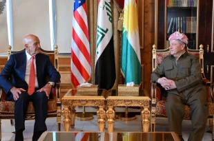 بحث الزعيم الكوردي، مسعود بارزاني، يوم السبت، مع مبعوث الرئيس الأميركي لشؤون سوريا توم باراك، الأوضاع في المنطقة والتأكيد على ضرورة الحوار والتفاهم لحل المشاكل العالقة. وقال مقر بارزاني في بيان ورد للوكالة، إن “بارزاني استقبل في مصيف صلاح الدين (بيرمام)، توم باراك، مبعوث الرئيس ترمب لشؤون سوريا والسفير الأميركي …