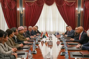 عقد في أربيل، مساء اليوم السبت، اجتماعا بين الزعيم الكوردي مسعود بارزاني، وقائد قوات سوريا الديمقراطية “قسد” مظلوم عبدي، ومبعوث الرئيس الأميركي لسوريا توم باراك. وجاء في بيان لمقر بارزاني، ورد للوكالة، إن “بارزاني استضاف في (پیرمام) اجتماعاً هاماً ضم كلاً من السفير توماس باراك المبعوث الخاص للرئيس الأميركي لشؤون …